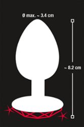 Esta joia do ânus é perfeita para uma utilização prolongada graças ao seu peso agradável e à sua forma ergonómica. Não se esqueça de utilizar um lubrificante de qualidade especialmente concebido para o prazer anal. A rolha em forma de coração permite uma libertação rápida de emergência - nunca force a inserção.