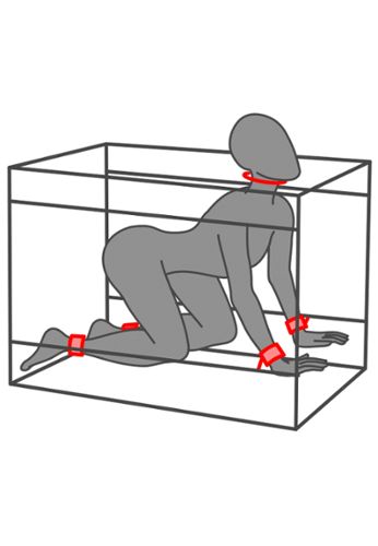 Unterwerfen Sie Ihren Partner mit diesem verstellbaren BDSM-Pranger einer intensiven und kontrollierten Penetration. Beschränken Sie ihn auf Hals, Handgelenke und Knöchel und bieten Sie ihm mit seinem schwarz geäderten Dildo unvergessliche Lust/Schmerzen.