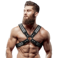 Gekreuztes Brust Harness Herren veganes Leder Nieten verstellbar