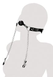 Gaiter met verstelbare tepelklemmen aan kettingen.