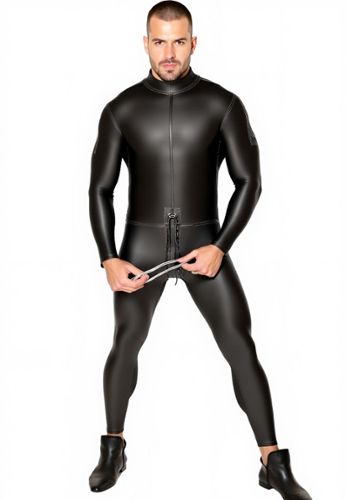 Questa tuta in lattice naturale lucido abbraccia il corpo come una seconda pelle. Dotata di una funzionale zip all'inguine, unisce praticità ed estrema sensualità.