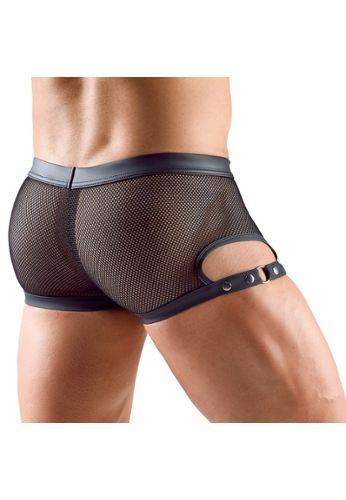 Diese schwarzen Boxershorts verbinden Komfort und Glamour mit Kühnheit. Vorderseite verziert mit funkelnden Strass auf der undurchsichtigen Tasche und Netzeinätzen. Rückseite bedeckt, weiches und elastisches Material, bedeckter elastischer Bund für maximalen Komfort.