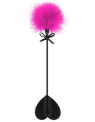 Tijdens je onderdanige spelletjes zullen er zeker billenkoekjes worden uitgedeeld met deze zwarte hartvormige zweep. Na de straf is het tijd voor strelingen en zachtheid met de roze duster, versierd met een strikje.