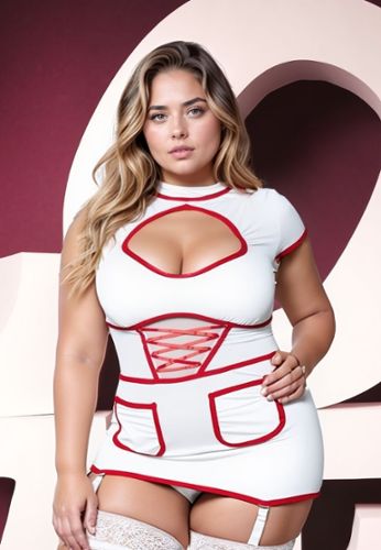 Entdecken Sie das weiße Sexy Krankenschwester-Kostüm, ein kurzes, halbtransparentes Kleid, das Ihre medizinischen Fantasien in brennende Realität verwandelt.