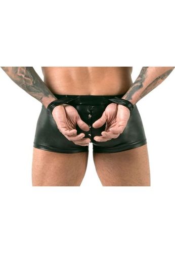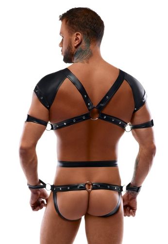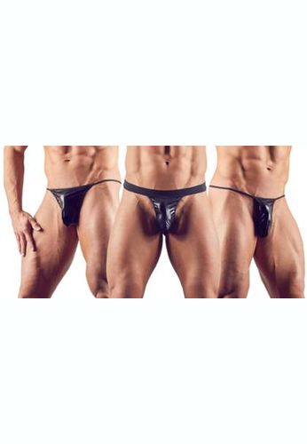 Wunderschöner String aus elastischem Kunstleder mit mehreren Riemen über dem Gesäß.