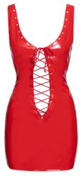 Kurzes Fetisch-Kleid aus leidenschaftsrotem Vinyl, Schnürung vorne und hinten.