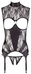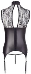 Πολυτελές μπουστάκι με ανοιχτό στήθος από απομίμηση δέρματος και δαντέλα με ασημένιες κλωστές.
