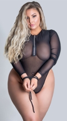 Fishnet κορμάκι με μπροστινό φερμουάρ και μακριά μανίκια.
