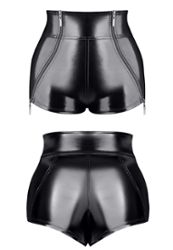 Το σορτς είναι κατασκευασμένο εξ ολοκλήρου από γυαλιστερό, ελαστικό μαύρο βινύλιο.