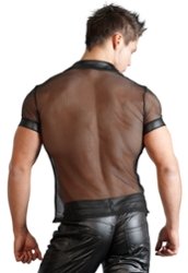 Διαφανές διχτυωτό ύφασμα, κολάρο και μανσέτες από απομίμηση δέρματος.