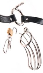 De peniskooi is perfect aangepast aan de mannelijke anatomie en is eenvoudig aan en uit te trekken: klap de leren heupgordel naar beneden, de niet-erecte penis gaat de kooi in en wordt vergrendeld aan de O-ring van de heupgordel.