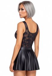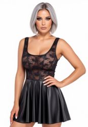 A mini strapless dress with a premium look: close-fitting lace top with matte-effect details, and fully matte-effect flared skirt. Soft, stretchy and comfortable, for an elegant, easy-to-wear fetish look.