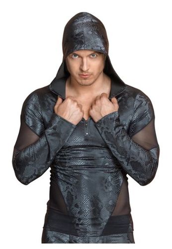 Snakeskin T-shirt with long sleeves and hood.