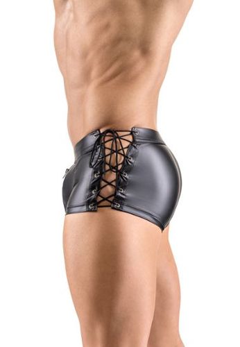 Boxer shorts with front zip and lacing on both sides.