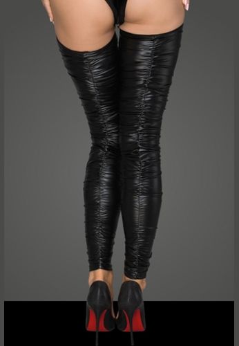 Intriguing, mischievous and devilishly sexy, these stockings are made of elastic faux leather.