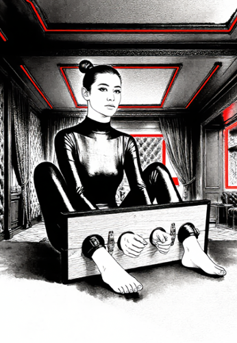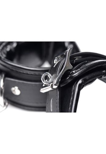 A pleasure throne made for oral play and soft domination: adjustable seat and backrest, adjustable headrest and head pads, a sturdy iron frame, and luxurious vegan leather cushions. With 5 attachment points, 2 cuffs and 5 carabiners, you’re set for a comfortable, stable, perfectly controlled scene.