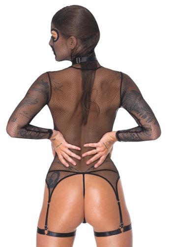 3-piece set including corset, garter belt and thong, in matte-effect coated fabric. Zips at the front for easy donning, corset with stays, and 6 adjustable (removable) suspenders to match your stockings.