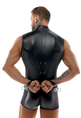 With its durable black leather straps, silver metallic details and lockable thigh straps, this set offers an intense male bondage experience. Fully adjustable with buckles, it guarantees a perfect, comfortable fit for all men.