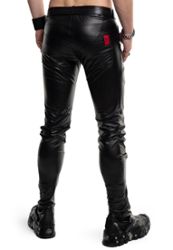 Modern trousers in elastic matte wetlook with low waist. Piece with 2-way zipper bottom front, 2 decorative zippers legs, front and back pockets, signature red Alcantara label, for a strong fetish statement and comfort.