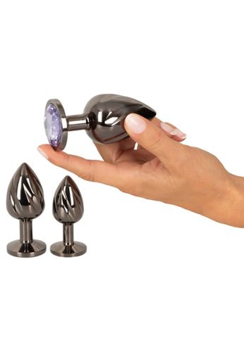 Tre misure diverse con gemme colorate e scanalature a spirale per un allenamento anale sicuro e un raffinato piacere decorativo.