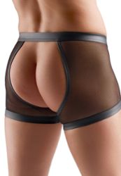 Un bóxer jockstrap para hombre en red transparente, con detalles wetlook y herrajes plateados. Incluye una correa ajustable con anillo peneano metálico y una cintura regulable para un ajuste preciso, manteniendo un tacto suave y elástico.