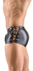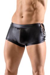 Estos calzoncillos bóxer de imitación de piel son muy eróticos, a la vez que ofrecen una comodidad óptima gracias a su imitación de piel elástica de excelente calidad, su acabado mate y sus dos cordones ajustables en los laterales.
