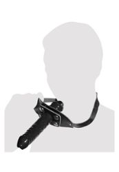 Dos accesorios, una sola pieza y una intención muy clara: esta mordaza con consolador combina el silencio y los juegos de penetración con un asertivo espíritu fetichista. El arnés ajustable de cuero negro sujeta una mordaza datex (con forma de pene y glande moldeado), a la que se fija un consolador externo extraíble con botones de presión. La mordaza y el consolador también pueden utilizarse por separado, para variar los escenarios: coacción, provocación, dominación o "momentos de empuje" más directos, siempre dentro de un marco consensuado y controlado.
