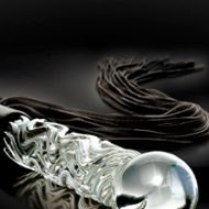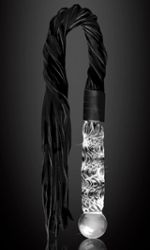 Superbo dildo a frusta in vetro trasparente con diversi rilievi per migliorare le sensazioni.