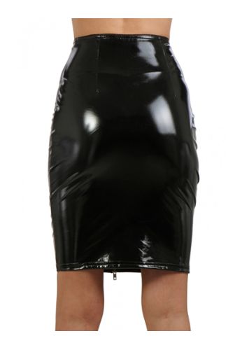 Su cuello alto y su cierre de cremallera en la espalda crean un look provocativo y refinado a la vez.