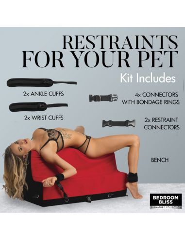 Este banco acolchado es perfecto para juegos pervertidos y ofrece un sujetador completo para el torso y las extremidades inferiores.
