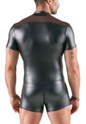 Macacão curto para homem tamanho grande BDSM com fecho de correr de 3 vias em tecido mate powernet