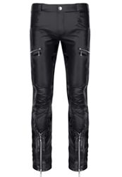 Παντελόνι σύγχρονο σε ελαστικό ματ wetlook με χαμηλή μέση. Κομμάτι με φερμουάρ δύο κατευθύνσεων κάτω μπροστά, 2 φερμουάρ διακοσμητικά πόδια, τσέπες μπροστά/πίσω, ετικέτα Alcantara κόκκινη υπογραφή, για ένα ισχυρό φετιχιστικό statement και άνεση.