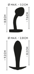 Questo duo permette di esplorare gradualmente: iniziate con il plug classico per abituarvi alle sensazioni, quindi esplorate la stimolazione della prostata con il plug curvo. Assicuratevi di utilizzare un lubrificante di qualità appositamente studiato per il piacere anale. Il rapido rilascio di emergenza è garantito dalle basi allargate: non forzate mai l'inserimento.
