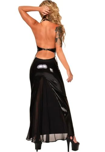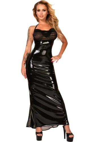 Realza tu estilo con este elegante vestido de Datex, con una atrevida espalda recortada y detalles de látex. Comodidad sin igual y sensualidad refinada garantizadas.