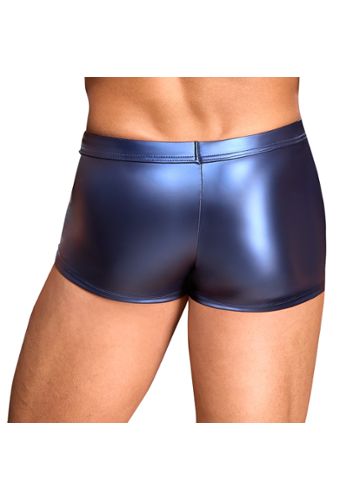 Un boxer conçu pour valoriser l'anatomie masculine. Pièce en look métallisé bleu mat avec sangles décorées de clous, inserts résille noirs et zip sur la poche rembourrée pour un look BDSM audacieux et confortable.