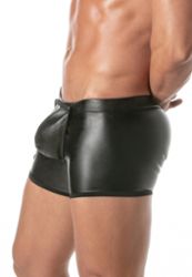 Le Kinky Easy Access Boxer est un boxer long homme en datex effet cuir qui combine look sexy et vraie praticité. Sa poche avant amovible et son ouverture frontale offrent un accès facile, sans sacrifier la ligne. Une pièce fetishwear chic, Made in France.