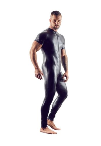 Un t-shirt conçu pour valoriser la silhouette masculine. Pièce en look noir mat brillant avec découpe en V au niveau du torse, col montant avec anneau et manches courtes pour un look BDSM excitant et confortable.