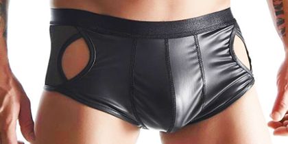 Le Kinky Easy Access Boxer est un boxer long homme en datex effet cuir qui combine look sexy et vraie praticité. Sa poche avant amovible et son ouverture frontale offrent un accès facile, sans sacrifier la ligne. Une pièce fetishwear chic, Made in France.
