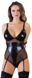 Este body Bondage com fecho de correr mistura com sucesso pele sintética elástica de qualidade com rede sólida e suave ao toque.
