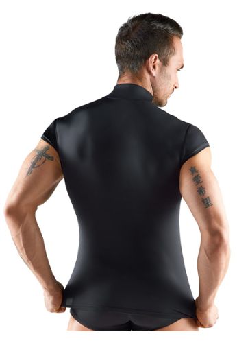 Este body fetiche de manga larga para hombre combina inserciones opacas de aspecto mate y transparentes de powernet en un diseño provocativo. Con su cuello alto y cremalleras dobles, ofrece un auténtico look BDSM.