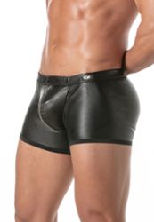 Con il Kinky Push-Up Zipped Boxer, TOF Paris ha creato un capo di lingerie maschile che unisce audacia, comfort e finiture di pregio. Il suo datex nero effetto pelle conferisce un look potente, perfetto per un guardaroba fetish elegante.