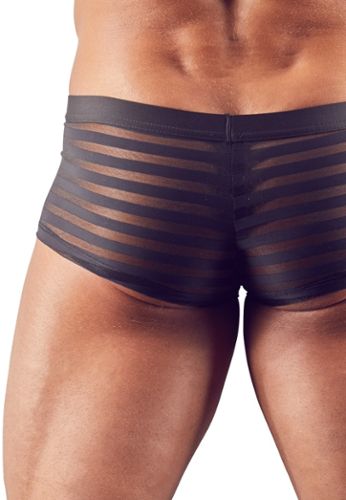 Een korte boxer met semi-transparante strepenook, ontworpen om de aandacht te trekken terwijl hij aangenaam blijft te dragen. Zijn flatterende snit benadrukt het silhouet, en het stretch-materiaal volgt uw bewegingen met comfort.