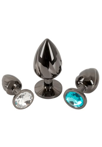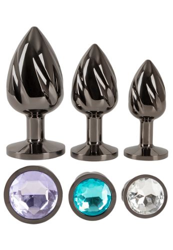 Tre misure diverse con gemme colorate e scanalature a spirale per un allenamento anale sicuro e un raffinato piacere decorativo.