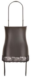Questo capo eccezionale combina l'eleganza dell'ecopelle con la raffinatezza del pizzo per creare un insieme di sconvolgente bellezza.