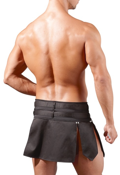 Una gonna nera in stile gladiatore, strutturata e sexy, con doppia cintura per segnare il punto vita. La schiena stretch offre vero comfort e una vestibilità facile, ideale per valorizzare le silhouette senza sentirsi compressa.