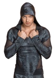 T-shirt in pelle di serpente con maniche lunghe e cappuccio.