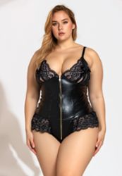 Le Body Olga révèle votre côté le plus sexy avec son tissu élastique rouge foncé ou noir sublimé par des dentelles sensuelles. Sa fermeture éclair avant audacieuse et ses bonnets fendus avec nœuds créent un look ultra provocant.
