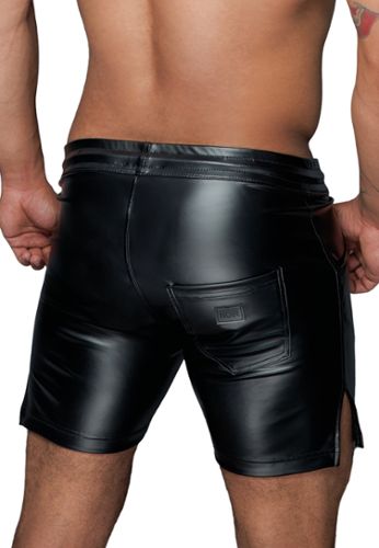 Una longitud muy cómoda para estos pantalones cortos ajustables de piel sintética.