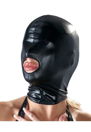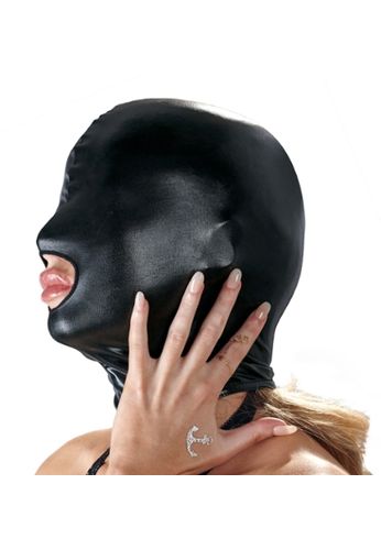 Completely cover your submissive's face with this shiny faux-leather balaclava.