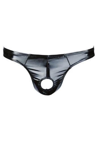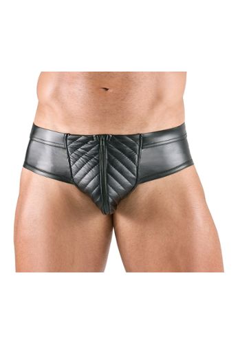Uno slip progettato per risvegliare desideri. Pezzo in materiale nero opaco lucido con apertura posteriore, tasca cucita e cerniera imbottita per un'esperienza BDSM seducente e confortevole.